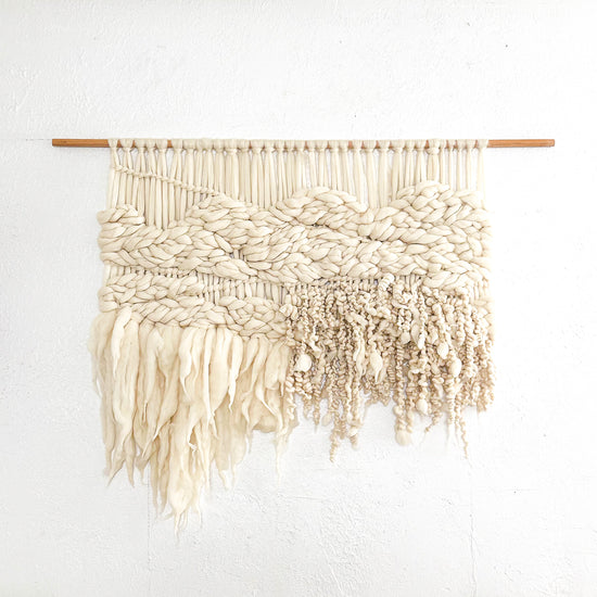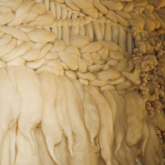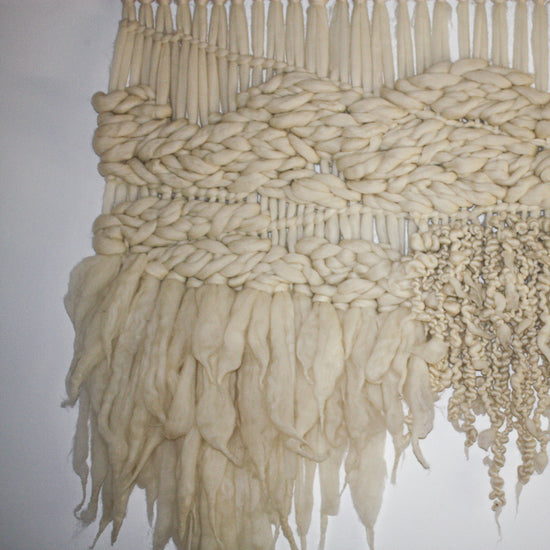 Trudy Perry's soft sculptures are the perfect way to bring warmth to a room. We like them placed above a bed to give it an extra inviting and cozy feel. The wool roving softens any wall and brings texture and personality to a space.