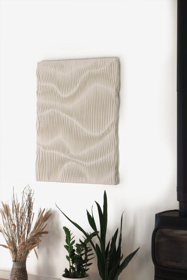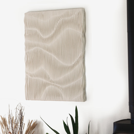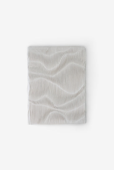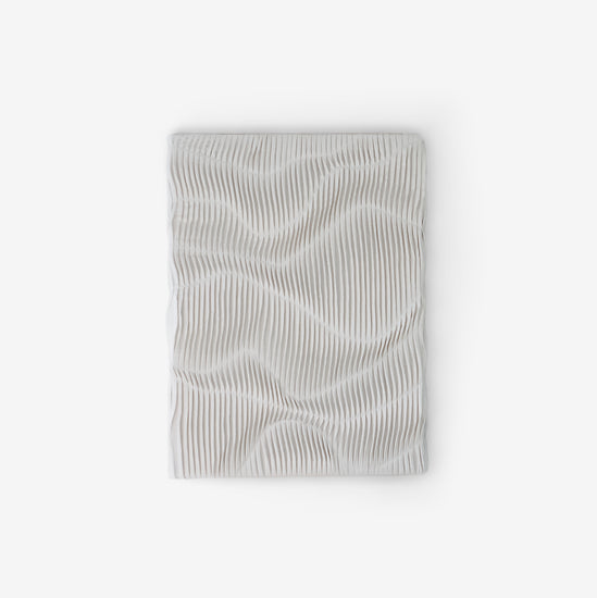 Morgan Young’s work is a natural evolution of her practice as a fashion designer and young figure skater. Her transition from fashion to fine art occurred after she had launched a high fashion line from reclaimed and deadstock fabrics and felt called to move towards a different expression of those materials. She began pushing the boundaries of canvas into a realm that expresses the form of a triple axel with the poetry and repetition of a vintage Singer. Deep pleats, patterned seams, and the vortex of visceral movement became her focal points, each work requiring a grueling physicality, the end result a serene and languid, almost nimbus iridescence flowing from the ripples of a once raw and rough fabric. Her latest collection Pleats, Please, Please is an homage to Japanese fashion designer, Issey Miyake.